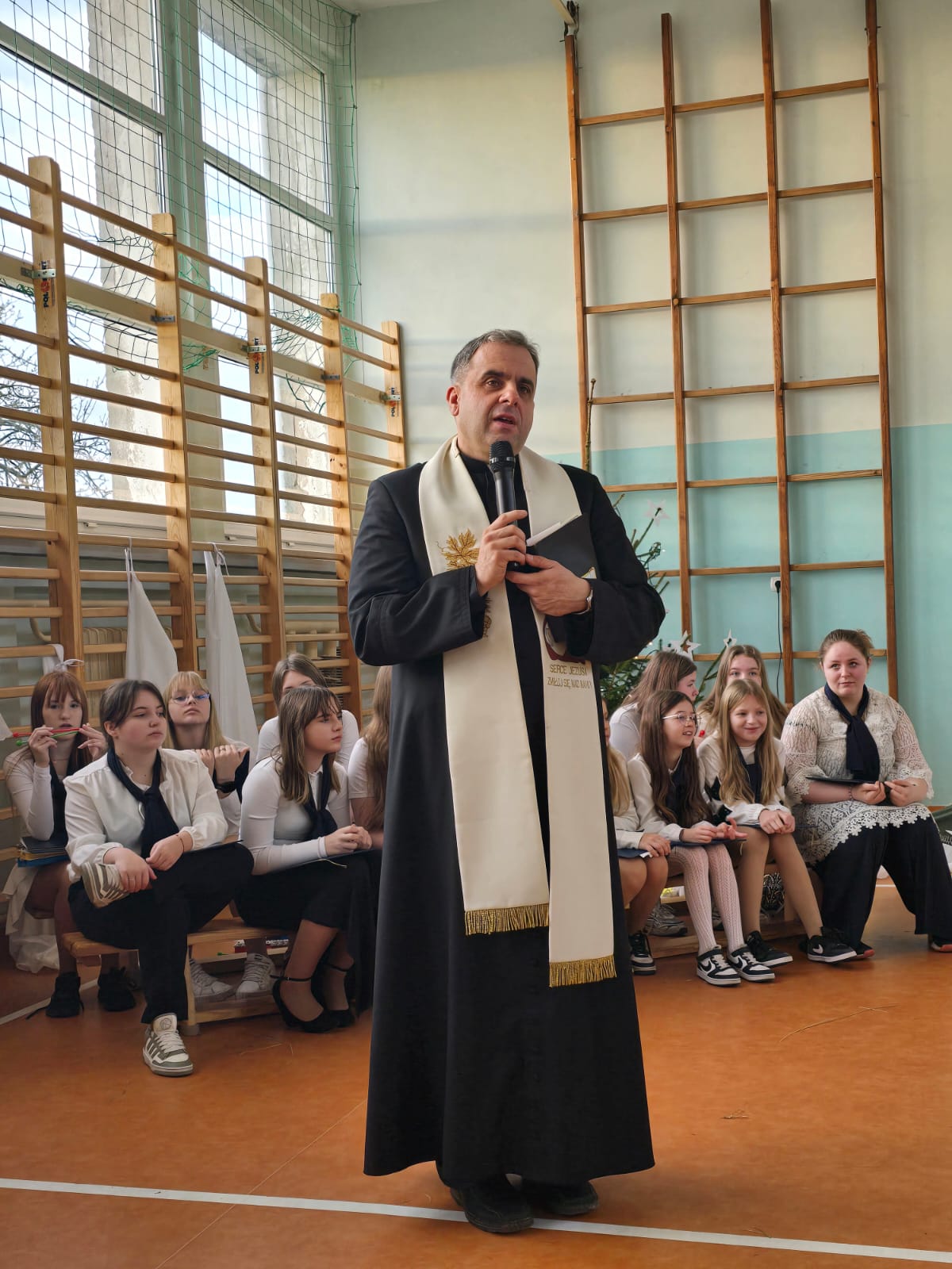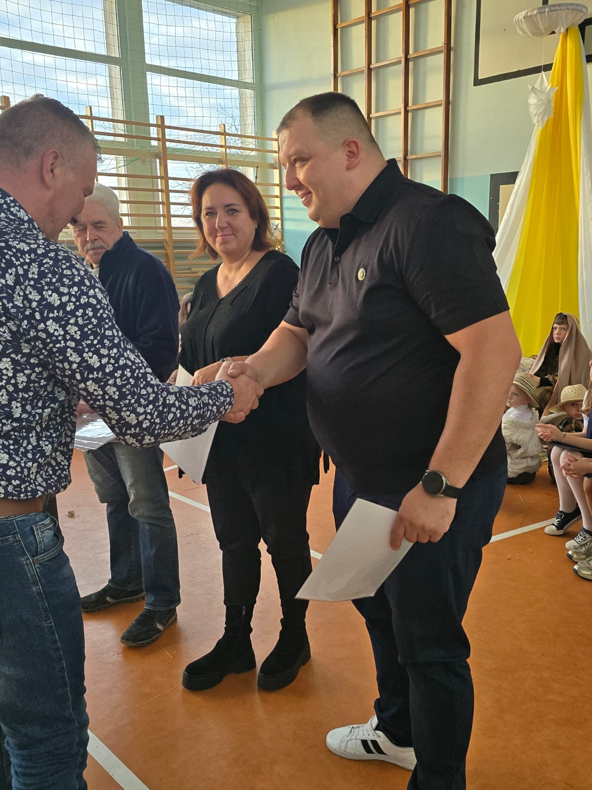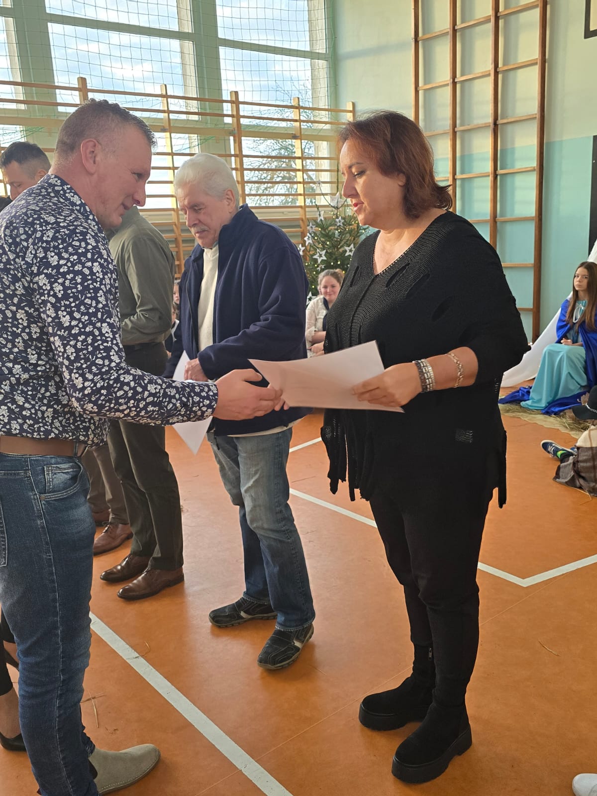 Apel z okazji zbliżającego się Bożego Narodzenia to nie tylko okazja do spotkań i składania życzeń, ale także podziękownia wszystkim, którzy wspierają nas w działaniach na rzecz szkoły. Rada Rodziców działająca przy naszej szkole, jej przedstawiciele p. Rafał Witek i p. Ewelina Kamińska w imieniu rodziców, nauczycieli i całej społecznoości szkolnej podziękowali darczyńcom za pomoc i wspieranie podjętych akcji . Wśród zaproszonych gości byli : p. Arkadiusz Pocenia Nadleśniczy Nadleśnictwa Rokita, p. Jerzy Frydrych prezes Koła Wędkarskiego ,,Pstrąg", ksiądz proboszcz Paweł Kasprzyk, p. Artur Beck Naczelnik OSP Czarnogłowy, p. Elżbieta Michalak, p. Żaneta Czaplicka, p. Hubert Kamiński właściciel firmy transportowej , panie Sołtyski oraz przedstawicielki Kół Gospodyń Wiejskich z obwodu naszej szkoły, p. Albina Kowalczyk, p.Ewa Włodarczyk, p. Adrianna Nowak, p. Bożena Macieja.