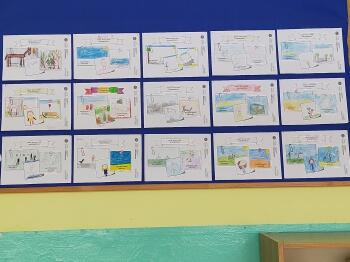 JAK DOBRZE WAS WIDZIEĆ... POWRÓT DO SZKOŁY - poszukiwaliśmy pomysłów na przywitanie, które spełnia warunek dotyczący dystansu społecznego, tworzyliśmy symbole graficzne, które oznaczały różne sposoby na „dzień dobry” oraz przedstawialiśmy swoje wakacyjne wspomnienia.