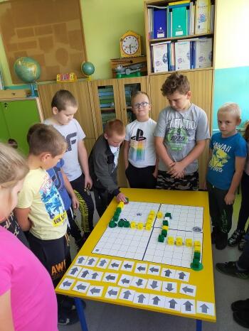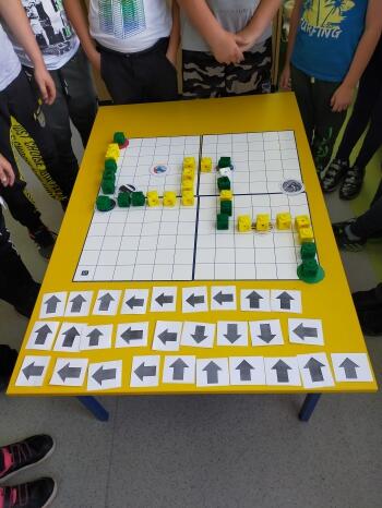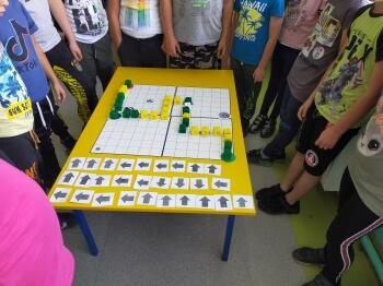 DROGA DO SZKOŁY ...... BEZPIECZEŃSTWO - omawialiśmy bezpieczne i niebezpieczne sytuacje na drodze, tworzyliśmy przy pomocy strzałek kod, który zaprowadził ucznia na pole docelowe (z domu do szkoły). Kod musiał uwzględnić następujący warunek: droga musi prowadzić przez pola, na których położone są grafiki kojarzące się z bezpiecznym poruszaniem się po drogach, a omijać grafiki kojarzące się z sytuacjami niebezpiecznymi.